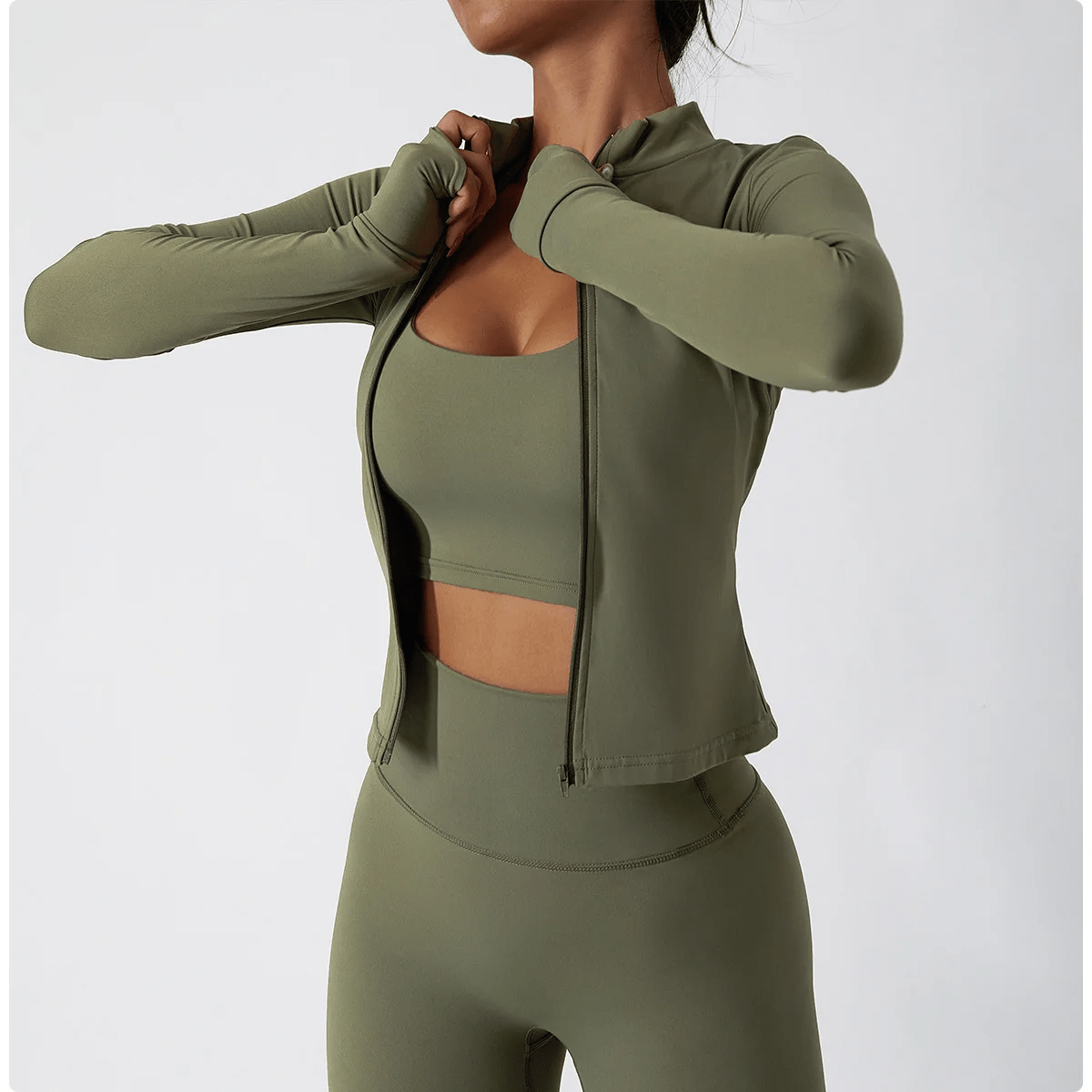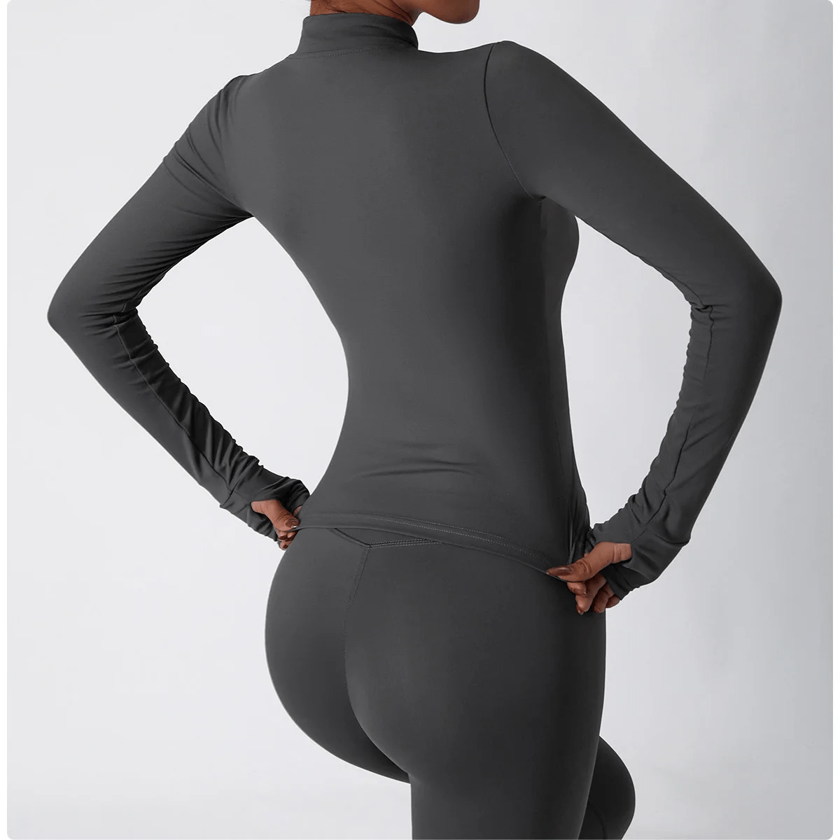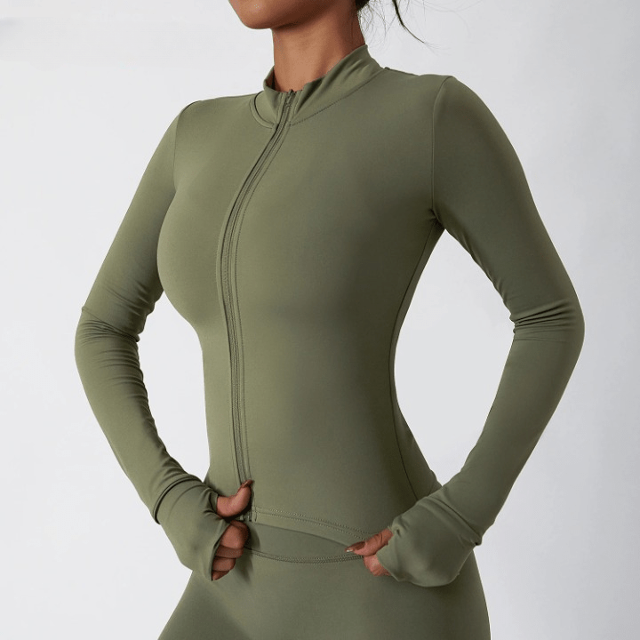 Med langærmet yogatrøje med lynlås får du en stilren og funktionel træningsjakke, der passer til alle aktive dage.