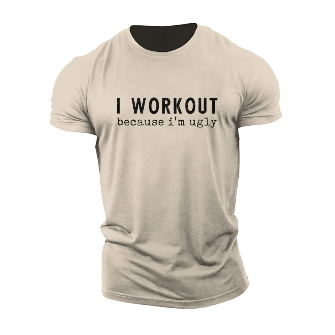 Erityisesti I Workout Because I'm Ugly T-Shirt – lyhythihainen t-paita, jossa on voimakas 3D-printti, joka yhdistää tyylin ja toiminnallisuuden. Ylisuuri istuvuus tarjoaa liikkumisvapauden ja modernin ilmeen, kun taas kestävä materiaali tekee siitä ihanteellisen sekä kuntosaliharjoitteluun että arkikäyttöön. Koot aina 2XL:ään saakka sopivat kaikille, jotka haluavat ilmaista voimaansa ja asennettaan.
