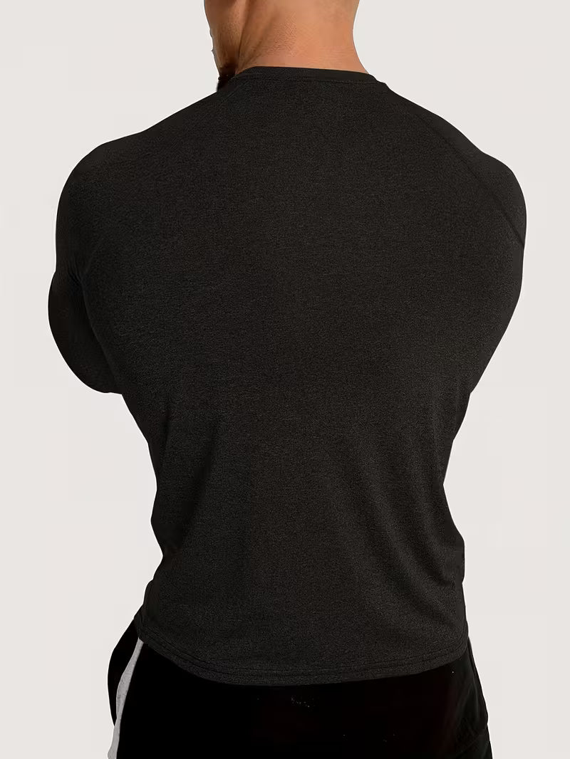 Atletische pasvorm rond armen en borst: Zorgt voor een sportieve en gedefinieerde look.