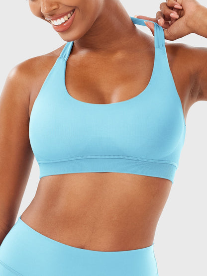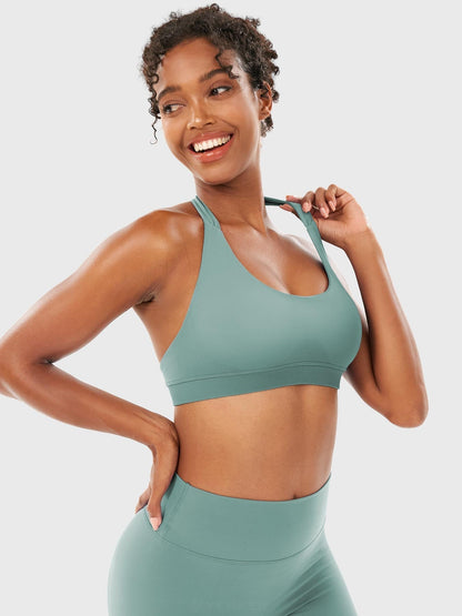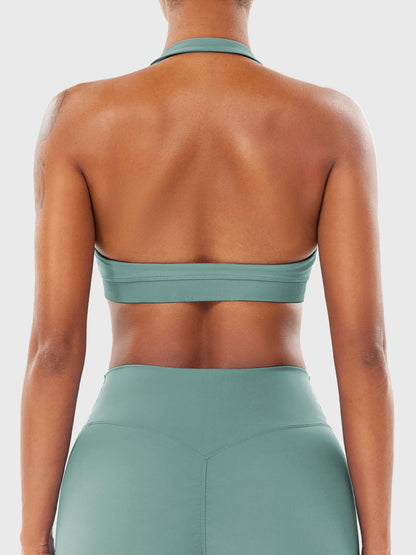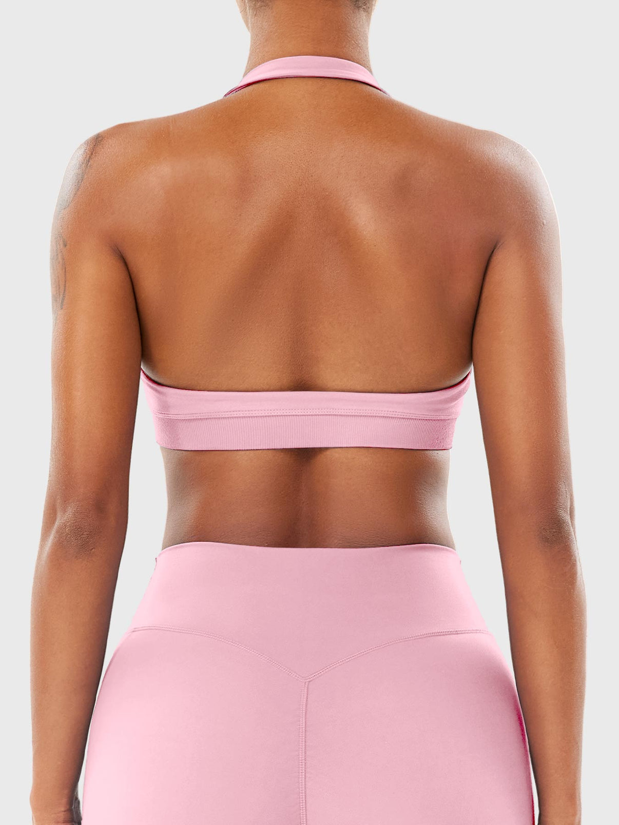 Gymfit Ela Halter Sport Top lyfter din träningsgarderob med en elegant halterneck-design, öppen rygg och ribbat band under bysten för medelhögt stöd. Tillverkad i ett mjukt, stretchigt och slitstarkt material som känns behagligt mot huden – perfekt för lättare träningspass eller som en stilren top till vardags.