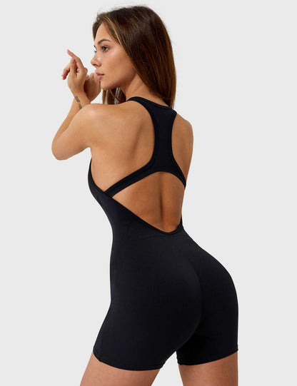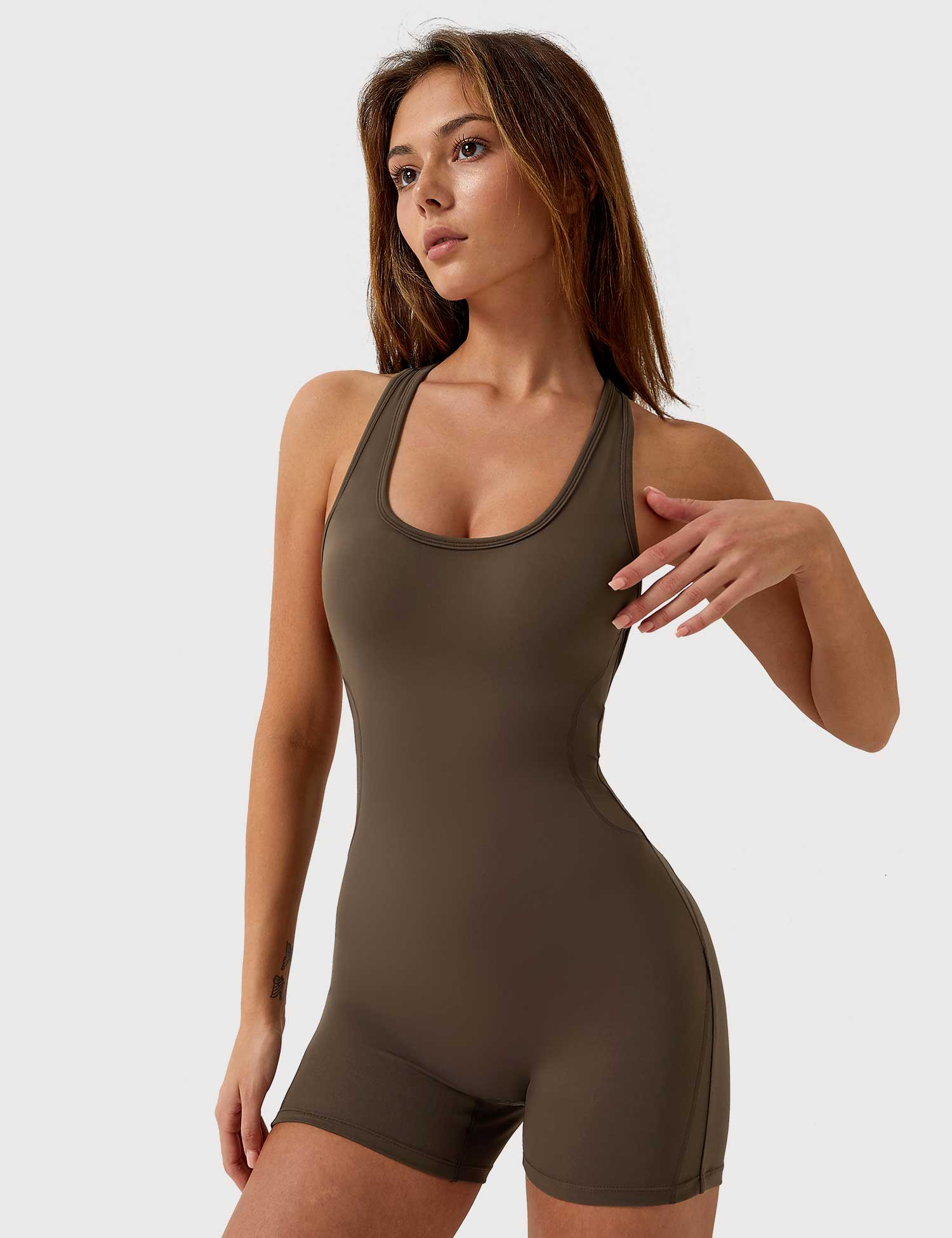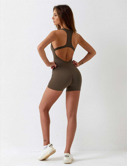 Vår U-Neck Jumpsuit är designad för både komfort och stil. Den är tillverkad av stretchigt, fukttransporterande tyg som håller dig torr under träningspassen. Den eleganta rygglösa designen framhäver din figur och ger en modern touch. Den är idealisk för aktiva kvinnor som söker snygga, funktionella kläder.