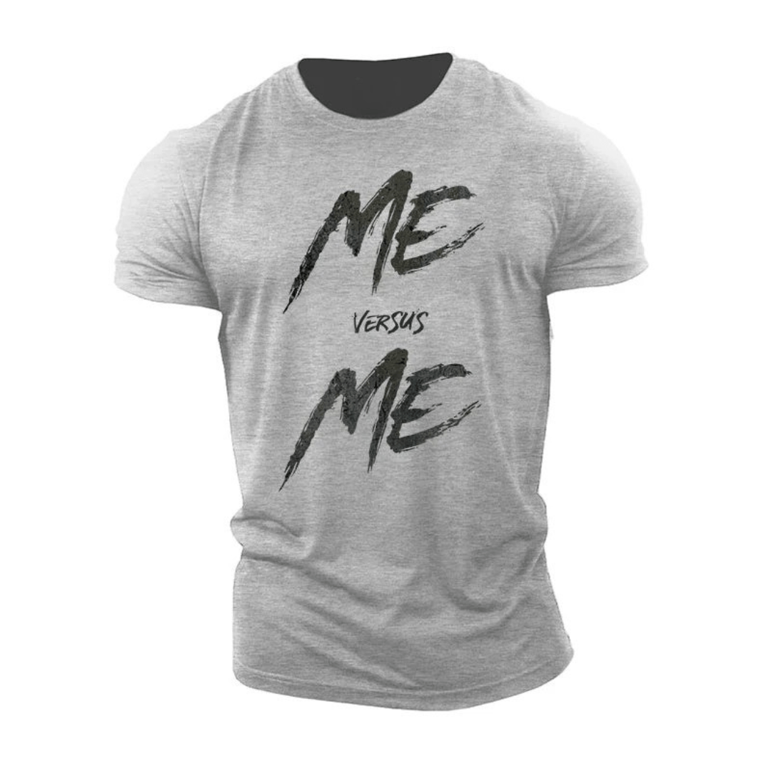 Ta din stil och träning till nästa nivå med Gymfit Me Vs Me T-Shirt – en t-shirt skapad för dig som vill utmana dig själv och alltid vara ditt bästa jag. Perfekt balans mellan komfort, kvalitet och design, oavsett om du är på gymmet eller i vardagen.