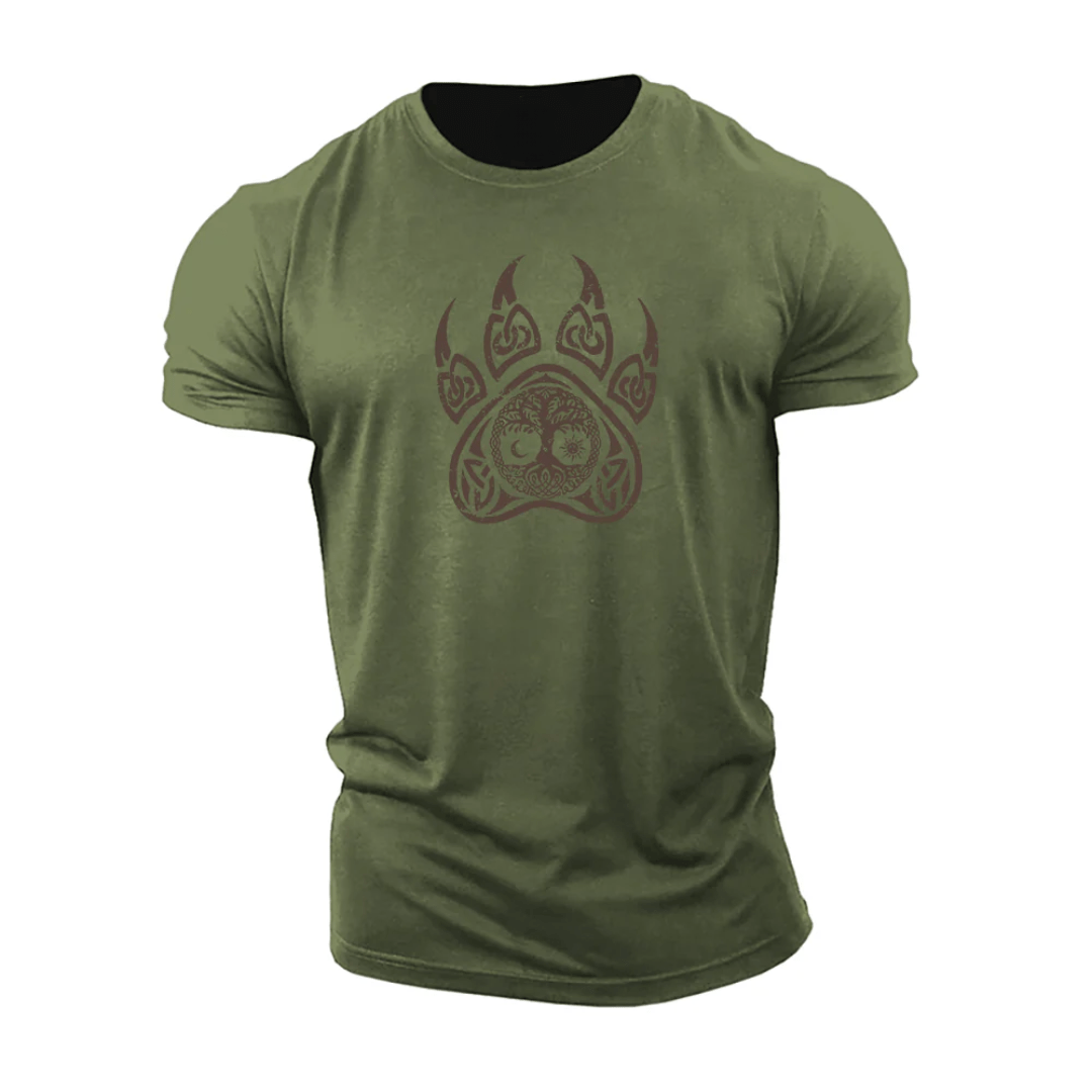 Ta din träning till nästa nivå med vår Viking Bear Claw T-Shirt. Denna t-shirt kombinerar stil och komfort, perfekt för både gymmet och vardagen. Den unika vargdesignen med intensiva röda ögon gör ett kraftfullt intryck, medan passformen framhäver din fysik och ger rörelsefrihet under träningen.