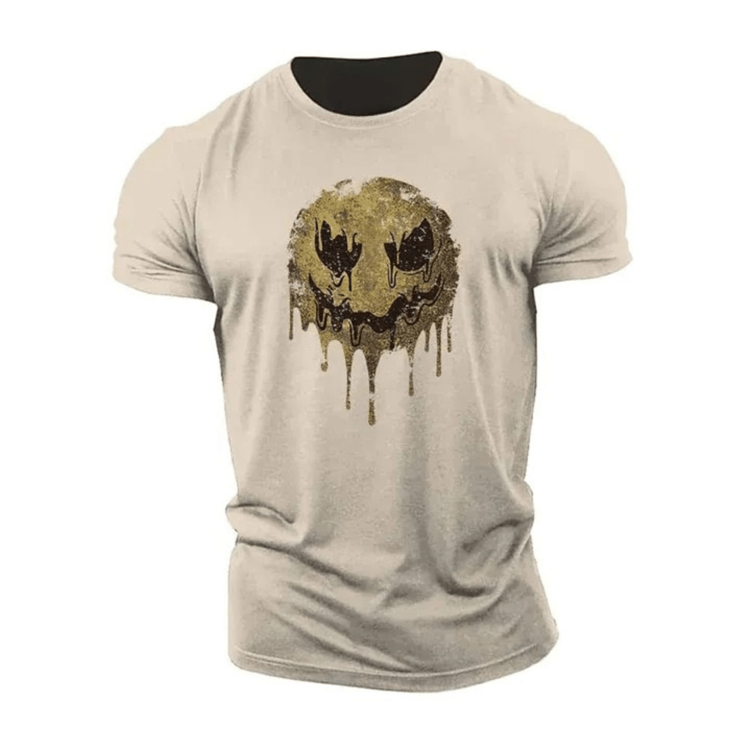 Ta din träning till nästa nivå med vår Vintage Smiley T-shirt. Denna t-shirt kombinerar stil och komfort, perfekt för både gymmet och vardagen. Den unika vargdesignen med intensiva röda ögon gör ett kraftfullt intryck, medan passformen framhäver din fysik och ger rörelsefrihet under träningen.